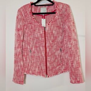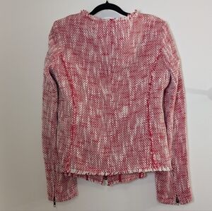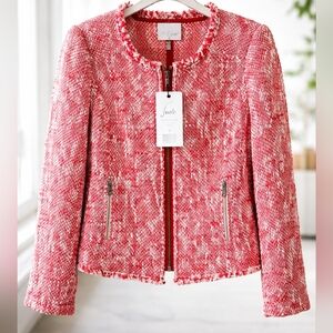 Joie NWT Collis Cherry Tweed Zip Blazer Frayed Jacket Size L Parisian Feminine
