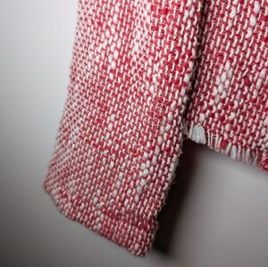 New with tags Joie Collis tweed jacket in the stunning Cherry colorway. This chic, Parisian-inspired blazer features a textured cotton blend weave, modern collarless neckline, raw frayed trim, and sleek front zip closure. Polished yet effortless, it’s perfect for office layering, brunch styling, or elevated everyday wear. The structured silhouette pairs beautifully with denim, trousers, or dresses, giving timeless sophistication with contemporary ease. A beautiful investment piece from a beloved luxury contemporary label.