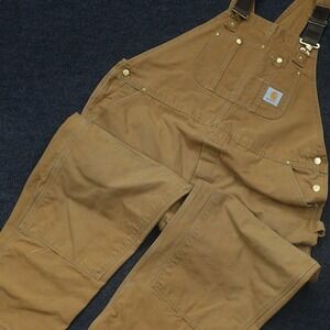 carhartt overalls bibs brown canvas duck workwear double knee dungarees