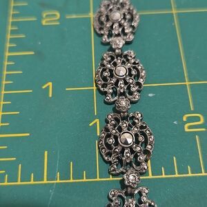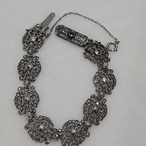 Stunning Sterling Silver bracelet and earring set features a plethora of Marcasite stones, each securely intact.