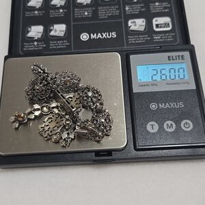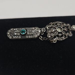 Box clasp encrusted with clear crystals and one green focal crystal, all intact.