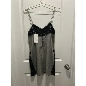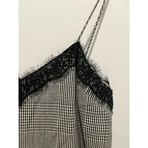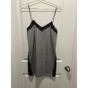 Zara Trafaluc Houndstooth Lace Trim Slip Mini Dress NWT Sz S