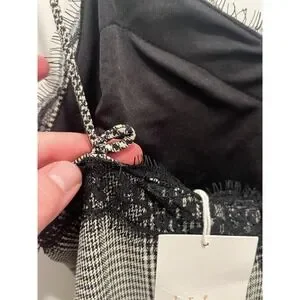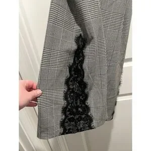 The Zara Trafaluc Houndstooth Lace Trim Slip Mini Dress is a stylish and trendy piece perfect for any fashion-forward woman. Featuring a classic houndstooth pattern and delicate lace trim, this short mini dress in a multicolor palette adds a touch of sophistication to any outfit. The size small fit ensures a flattering silhouette, making it a versatile piece for both casual and formal occasions.