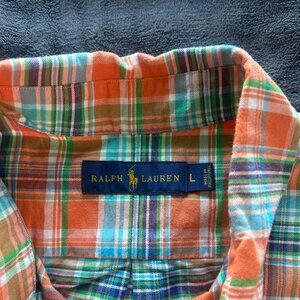 Ralph Lauren Oxford Plaid Shirt L Orange Green Blue Short Sleeve Cotton