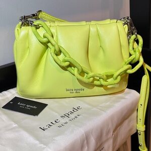 Vibrant lime green Kate Spade boutique bag with bold chain detail. Pillow soft leather. Additional adjustable crossbody strap. Perfect for adding a pop of color.