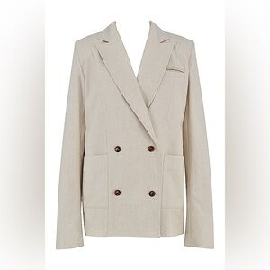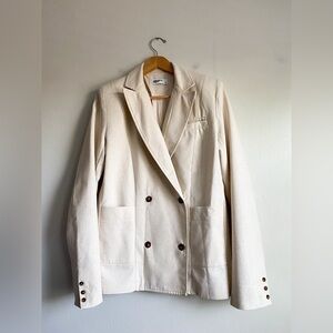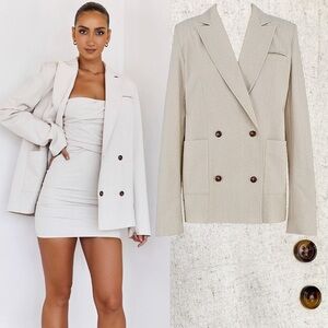 Mistress Rocks Linen Oatmeal Neutral Beige Oversized Blazer Double Breasted XS