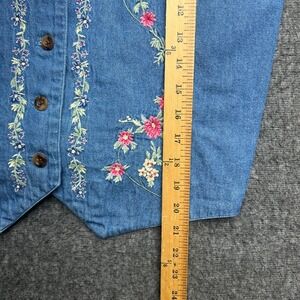 Denim Vest Floral Embroidered Medium Cotton Vintage Boho Cottage Grandma Prairie