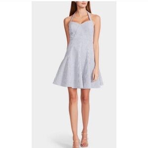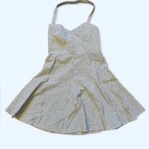 Betsey Johnson striped blue and white seersucker halter mini dress (L)