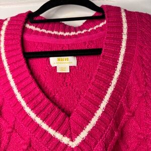 Anthropologie Maeve The Tillie V-neck Pullover Pink Varsity Sweater