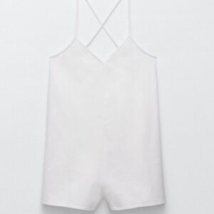 NWT Zara white denim cross back, sleeveless, V-neck women’s XS romper. Spaghetti straps that crisscross at the back to give you a stylish open back look. Side zipper closure for a seamless look.