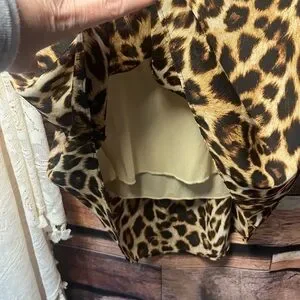 * Print: A bold leopard-style cheetah pattern in a brown and black color palette.