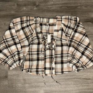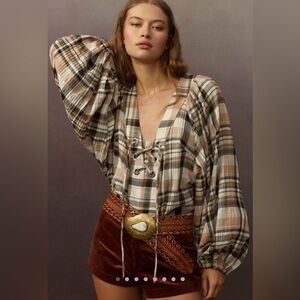 By Anthropologie long sleeve lace up dolman blouse