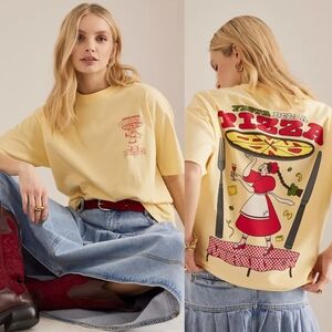 NWT ANTHRO' DAMSON MADDER Pizza Party Boyfriend Tee