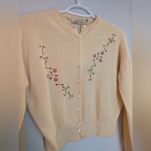 Vintage Newport of Canada Hand-Embroidered Cardigan – Fur Blend – Floral Knit