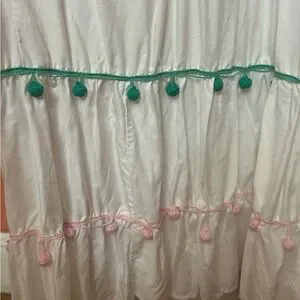 NWT Crown & Ivy White Tiered Maxi Dress with Colorful Pom Pom Trim - Size Large