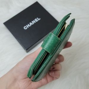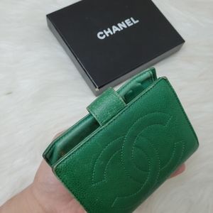 Elegant CHANEL wallet. Features iconic logo. Vibrant green color. Guaranteed authentic. Used but still has a lot of life left.