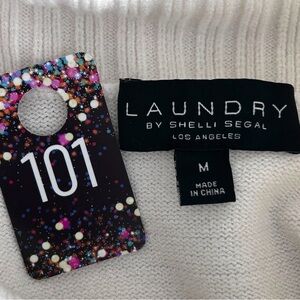 Chic and modern Laundry by Shelli Segal striped turtleneck sweater featuring a classic black and white colorblock stripe pattern and soft ribbed trim. This piece reflects the brand’s polished, contemporary aesthetic and works well as a versatile layering knit for fall, winter, and transitional styling. The fabric blend with viscose and nylon gives it a smooth, lightweight knit feel with gentle stretch and structure. Great staple piece with a timeless minimalist look.