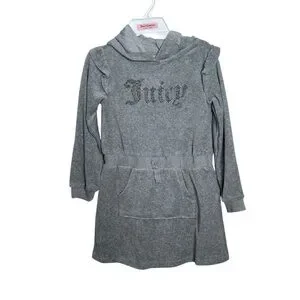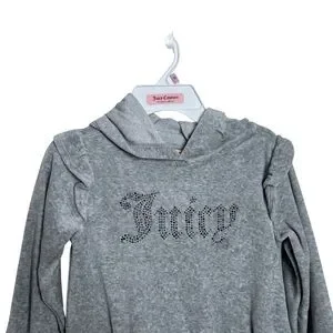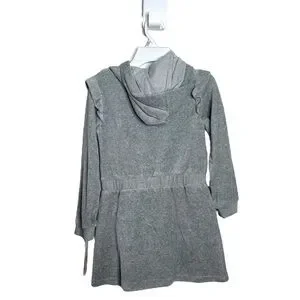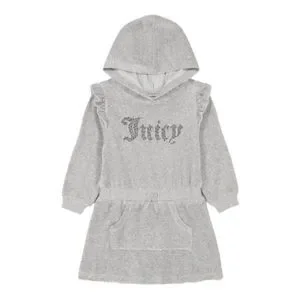 Juicy Couture Little Girls Gray Rhinestone Logo Velour Long Sleeve Ruffle Dress