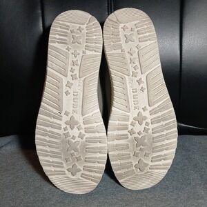 Hey Dude Women's US Size 8, EU 39. FIT LIKE A SIZE 8 1/2. Loafers in an olive green canvas, designed exclusively for Buckle. These lightweight slip-on shoes feature a classic moc-toe silhouette with elastic bungee laces for an easy fit. The interior is lined with a geometric patterned fabric, and the heel counter is reinforced with a textured woven material and a decorative pull tab. Finished with a speckled off-white foam outsole for cushioned comfort and a modern look.