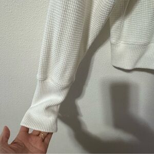 EUC Alo Yoga Waffle Weekend Escape Mock Neck Long Sleeve Ivory Semi Cropped