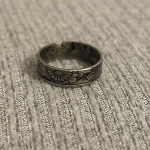 Vintage size 4.5 silver tone floral ring made out of Japanese 50 yen coin