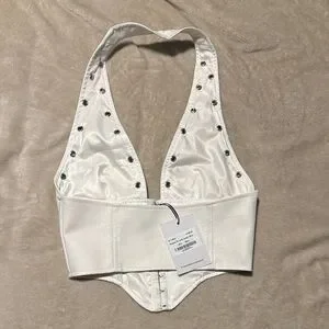 NWT, Faux Leather. Some discoloration or scuffing from ribbing against other clothes. Flexible on price.