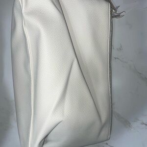 Elegant cream pouch with a satin finish featuring the initial O. Ideal for Disney fans.