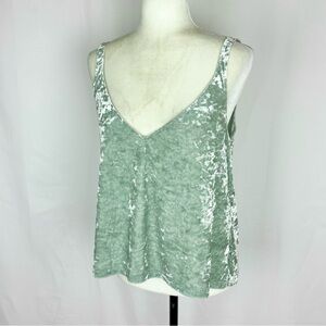 Seafoam green crushed velvet camisole top by H&M. Stretchy. V-neck, v-back. *No size tag Armpit to armpit is 18.5" across, shoulder to hem is 23" long. Listing as size M, but PLEASE REFER TO THE ACTUAL MEASUREMENTS TO BE SURE OF FIT. Excellent condition