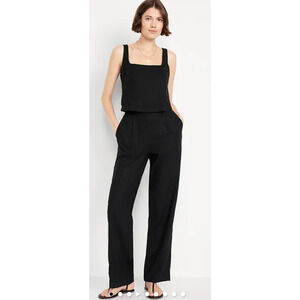 Old Navy Black Taylor Extra High Rise Wide Leg Linen Blend Trousers