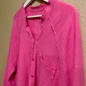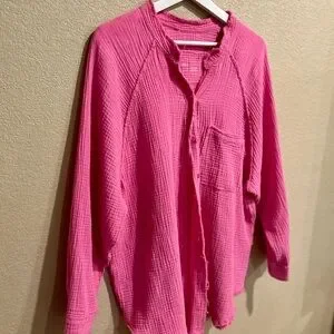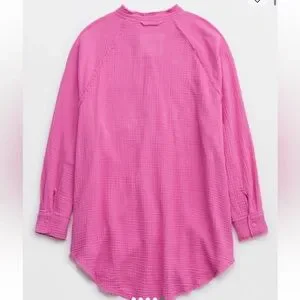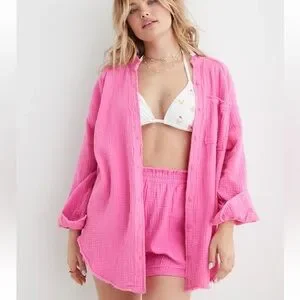 Aerie Pink Women's Gauzey Swim Cover-Up Top Size L Oversized Swim Beachy Boho