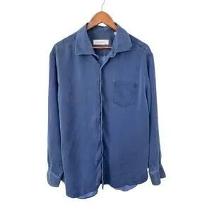 Tommy Bahama Blue Silk Wool Blend Button Down Shirt Long Sleeve Mens Casual Resort Wear Size L Chest Pocket