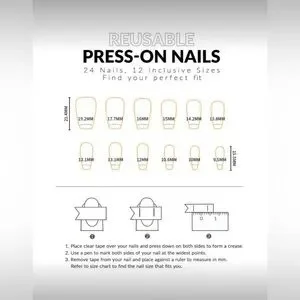 3. Select a right size of the nail, apply the glue to the back of the nail, or use the adhesive tape to attach the back of the nail. (do not drop the glue onto the skin)