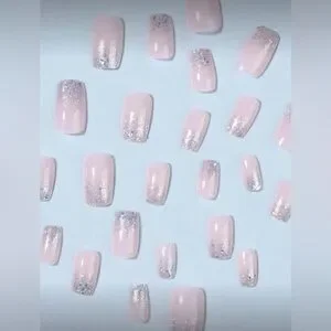 Silver Glitter Short Square Nail Kit | 24-Piece Press-On | New