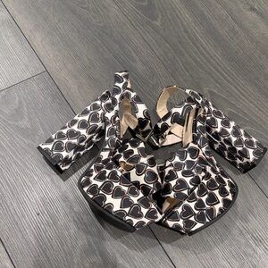 Stylish platform sandals featuring a unique heart pattern. Perfect for adding a playful touch to any outfit.
