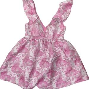 Altar'd State Ashley Jacquard Pink Mini Dress L Floral Avante Spring Babydoll Pleated Size L Bloggers Fav Romantic Feminine MSRP$88