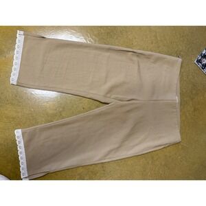 NWT Zemeta Lace Trim Capri Pants Crop Mid Rise Casual Khaki msrp$105