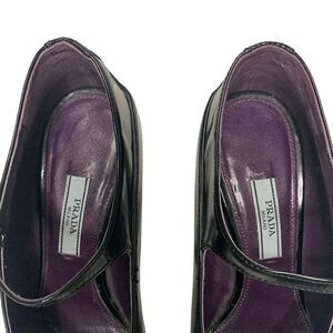 Prada Mary Jane Runway 2012 Black Leather Gey Rubber Cap Toe Heels EU 37.5 Pumps