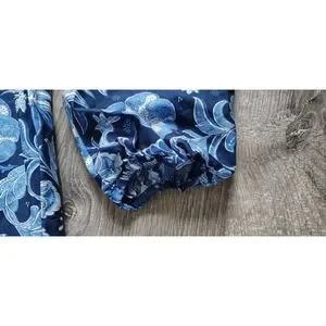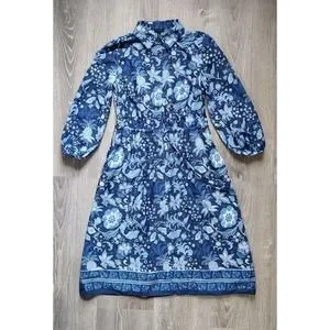 Talbots Dress 4P Womens Blue Floral A Line 3/4 Balloon Sleeve Drawstring Waist