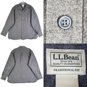 LL Bean Shirt Chamois Mens Size XL Gray Long Sleeve Button Up Flannel