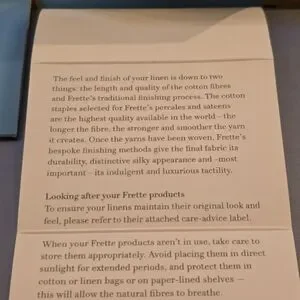 Frette (/ftefreh-TAY)is an Italian textile company that manufactures linen. Established in Grenoble, France, in 1860, it was relocated to Concorezzo, Italy, five years later. Their headquarters are currently in Monza, Italy. As of 2023, the company owns and operates over 100 boutiques worldwide. Copyright Wikpedia Online