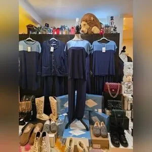 Frette Cascade Lounge Collection 2026 NWT 2 Pieces Top/ Pants Blue Silk/ Cotton