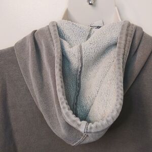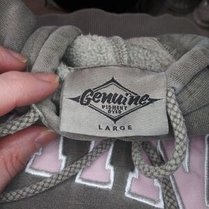 Nice vintage khaki green colored hooded kangaroo pocket sweatshirt with the word "Maine" in pink on the front with white stitching around the letters. Inside brand label reads Genuine Pigment Dyed. This is in really good condition with a bit of fading at the seams, and cuffs, and tiny spot below the word "Maine" in front. None of this affects the overall apperance of the sweatshirt. Bust measures 23 3/4, waist 22 1/2, hem 21 inches, length 25 1/2 inches. Please see all photos, always accepting reasonable offers.