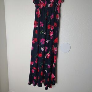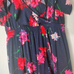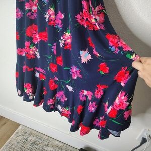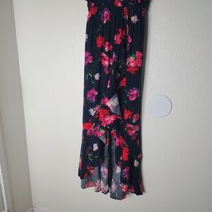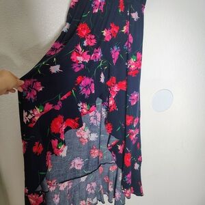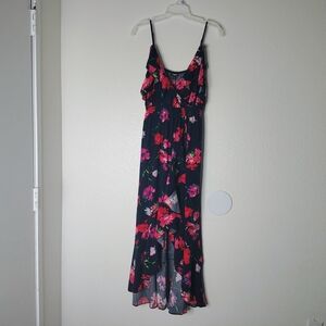 Express Floral Maxi Dress Small Blue Pink Ruffle High Low Wrap Faux Summer Boho