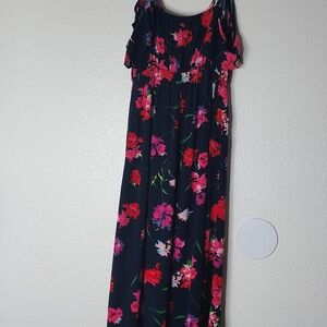#ExpressDress #FloralMaxi #SummerFashion #BohoStyle #HighLowDress #VacationWear #RuffleDress #TropicalPrint #FestivalFashion #SummerVibes
