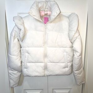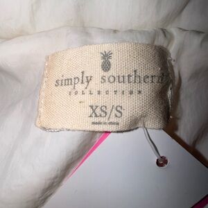 Brand new with tags Simply Southern puffy jacket in a beautiful soft ivory color. Features a cozy padded design, full zip front, high collar, side pockets, and trendy ruffle shoulder detail for a stylish feminine touch. Warm yet lightweight — perfect for winter layering, casual outfits, travel, or everyday wear.