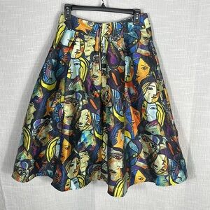 BANJUL Pretty as Picasso Faces Pleated Skirt Art Lover Museum Medium