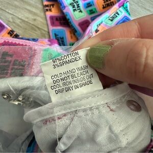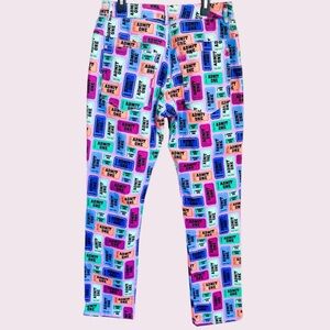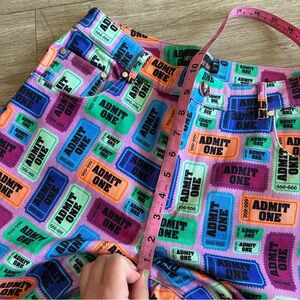 Brand new without tags only tried on all over admit one ticket print jeans by maximalist kitsch Canadian indie designer Hayley elsaesser. For fans of nooworks/gorman/big bud press. Lavender with all over colorful print. Size 30. Includes extra button. Rare Sold out style!