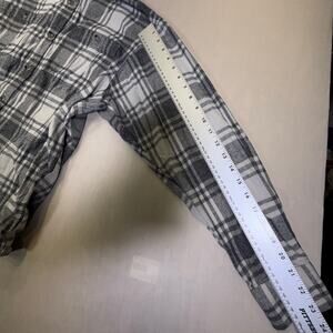 RED HEAD mens gray white plaid flannel button down long sleeve casual work shirt