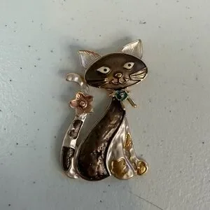 Kitschy Cat Lady Old Tone Enamel Magnetic Brooch Costume Jewelry Cats vintage ?