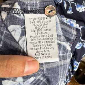 Material: 58% viscose, 32% cotton, 10% linen; slip lining 55% cotton, 45% modal (per care tag)